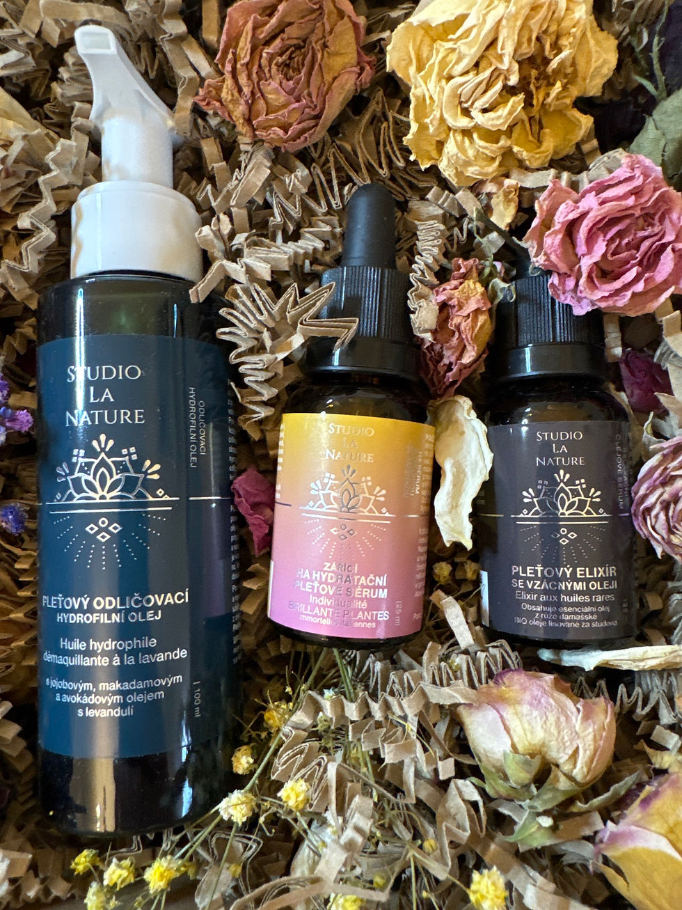 Sada TRIO MĚSÍČNÍ DÁRKOVÁ: čišteni, hydratace, výživa🌸HA sérum slaměnka